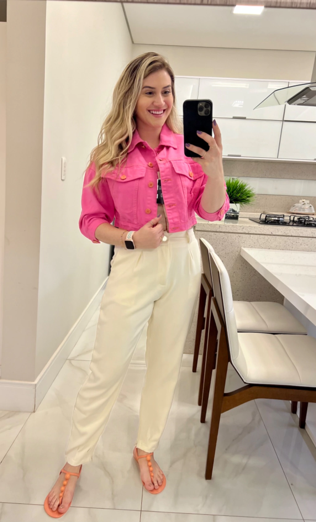Combine a Calça Lisboa com uma blusa de seda e saltos altos para um look sofisticado, ou opte por uma t-shirt básica e sneakers para um visual mais casual. Essa calça é perfeita para o escritório, jantares ou eventos especiais.